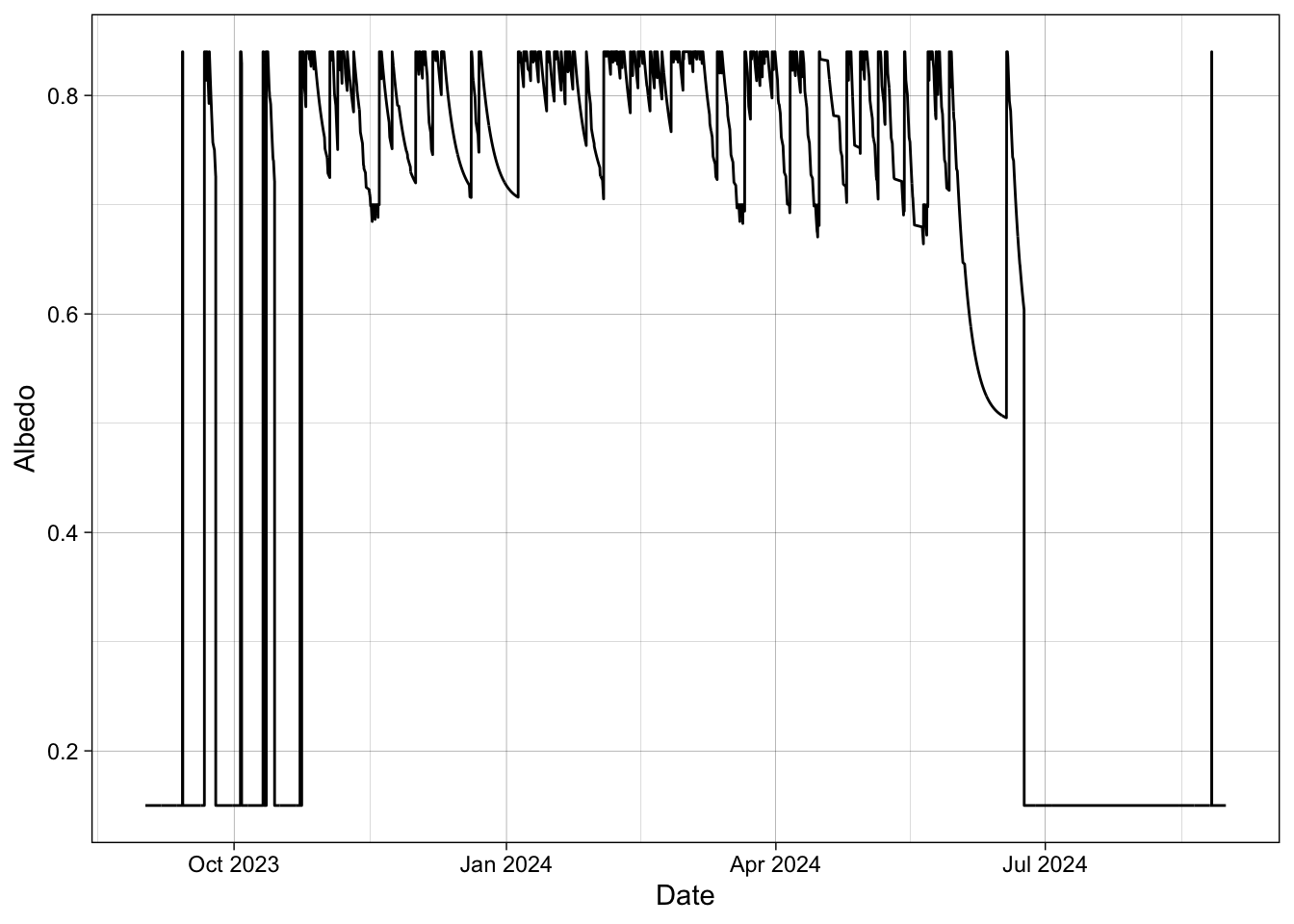 geom_line(aes(y = albedo, color = "Albedo")) +