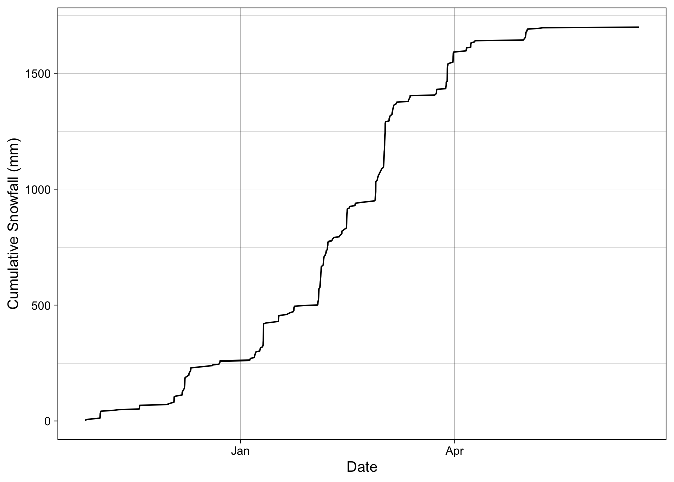 y = "Cumulative Snowfall (mm)"